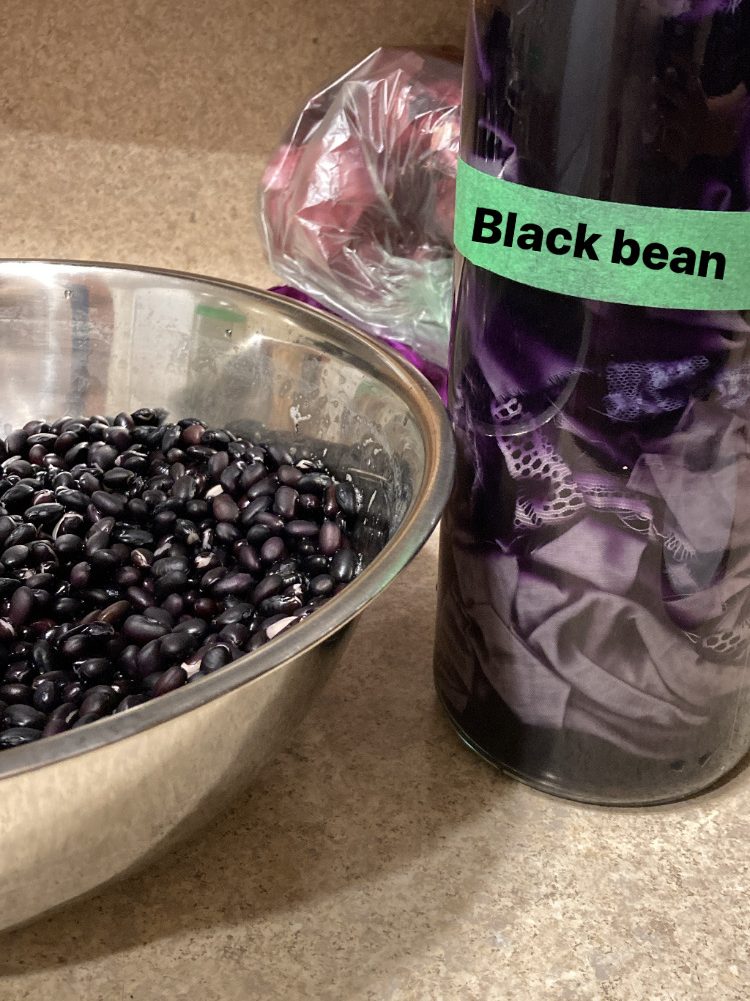 - Add cold water to the extracted source, mix and pour the liquid into a sealable container. Leave enough room for fibers. (Usually the ratio of dye source and fiber is 1:1)