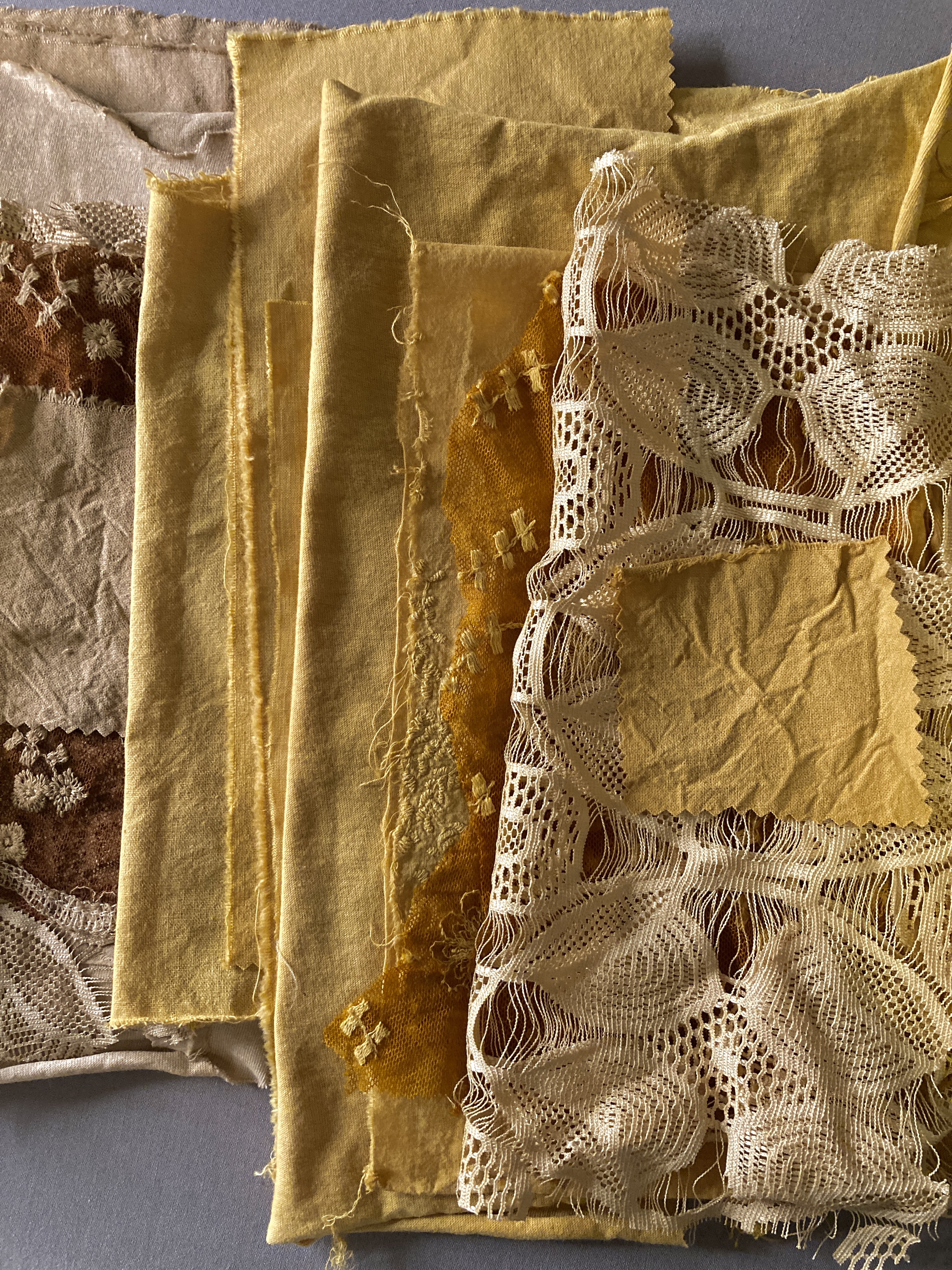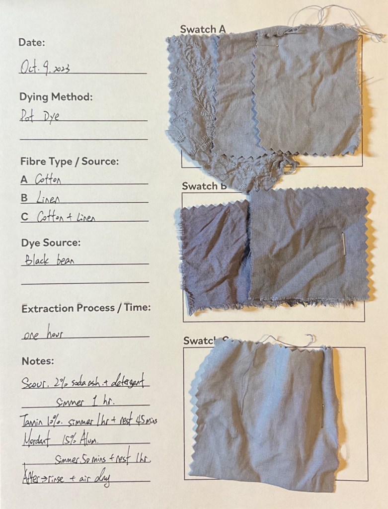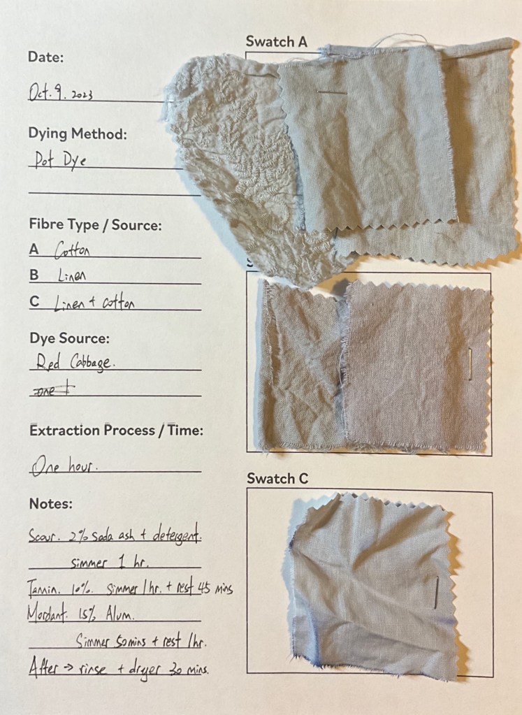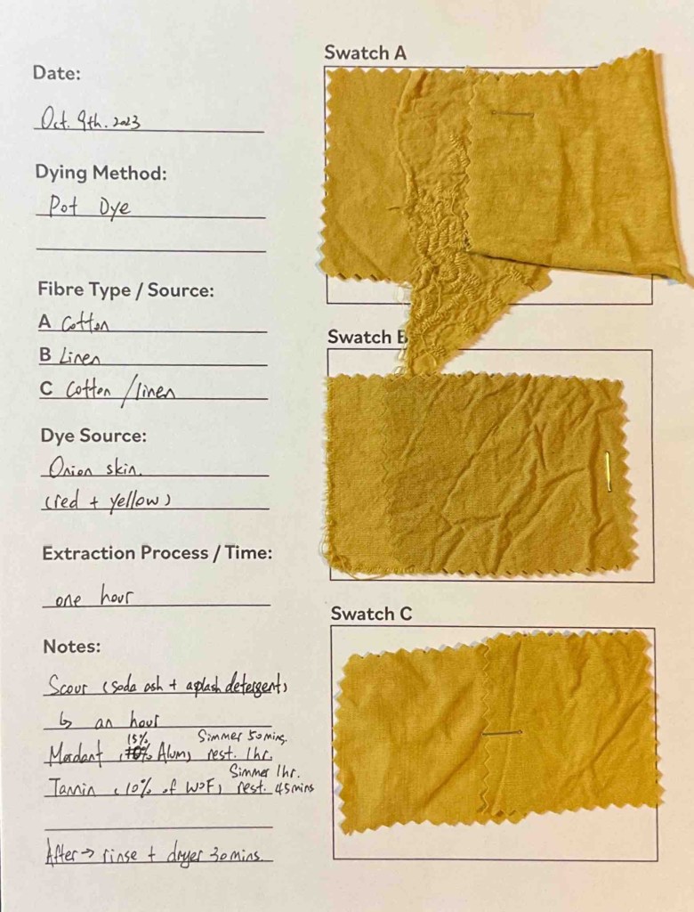 Alum was used as a mordant at 15% of WOF, followed by cooking/simmering for 45 minutes and resting for an hour.