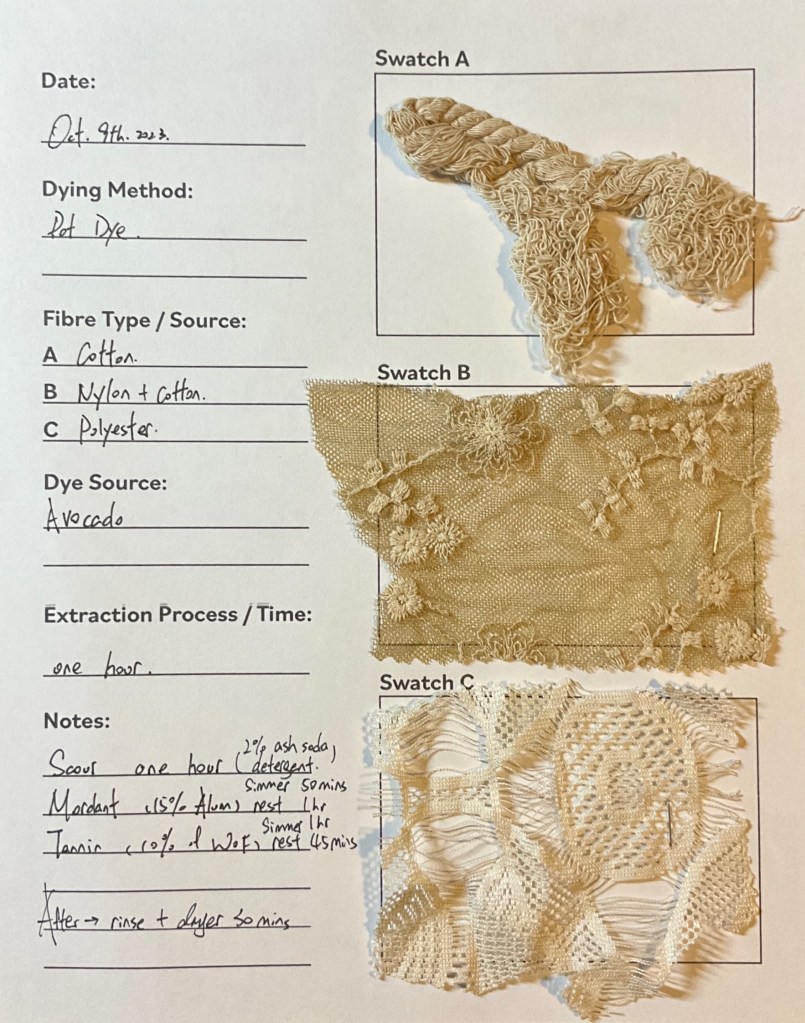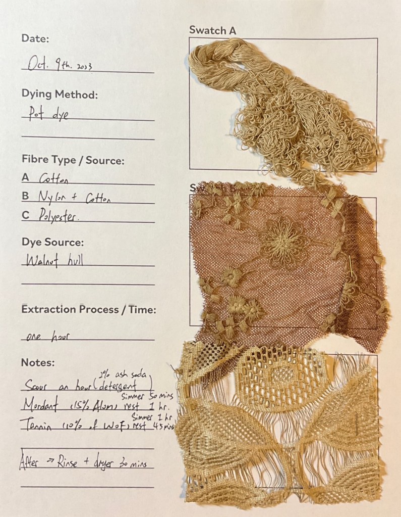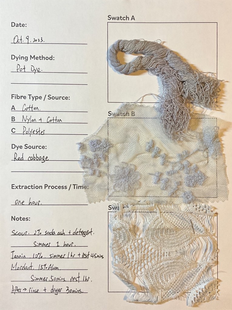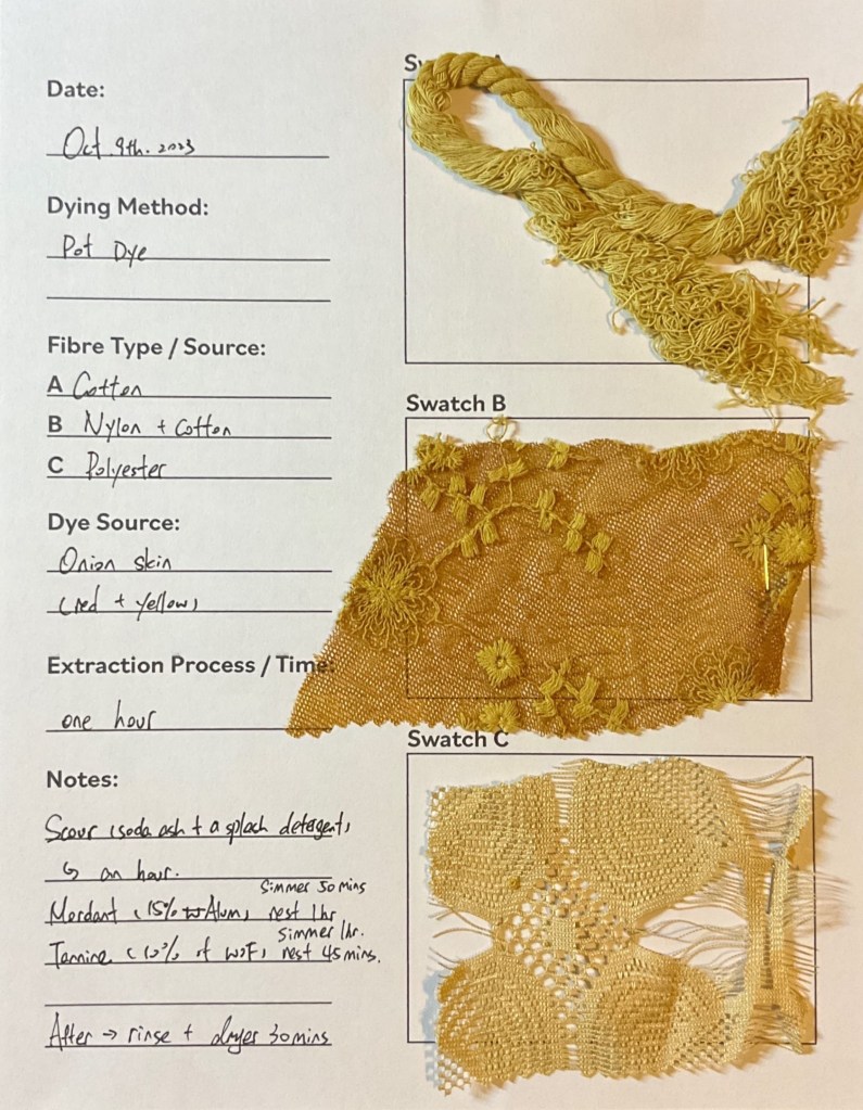 Natural dyes have a long history of use in the textile industry, offering sustainable and eco-friendly alternatives to synthetic dyes. This study investigates the potential of food waste as a source of natural dyes and examines how these dyes interact with different types of fibers. The research question for this study is: “How would food waste dye sources react on different fibers (natural and synthetic)?”
