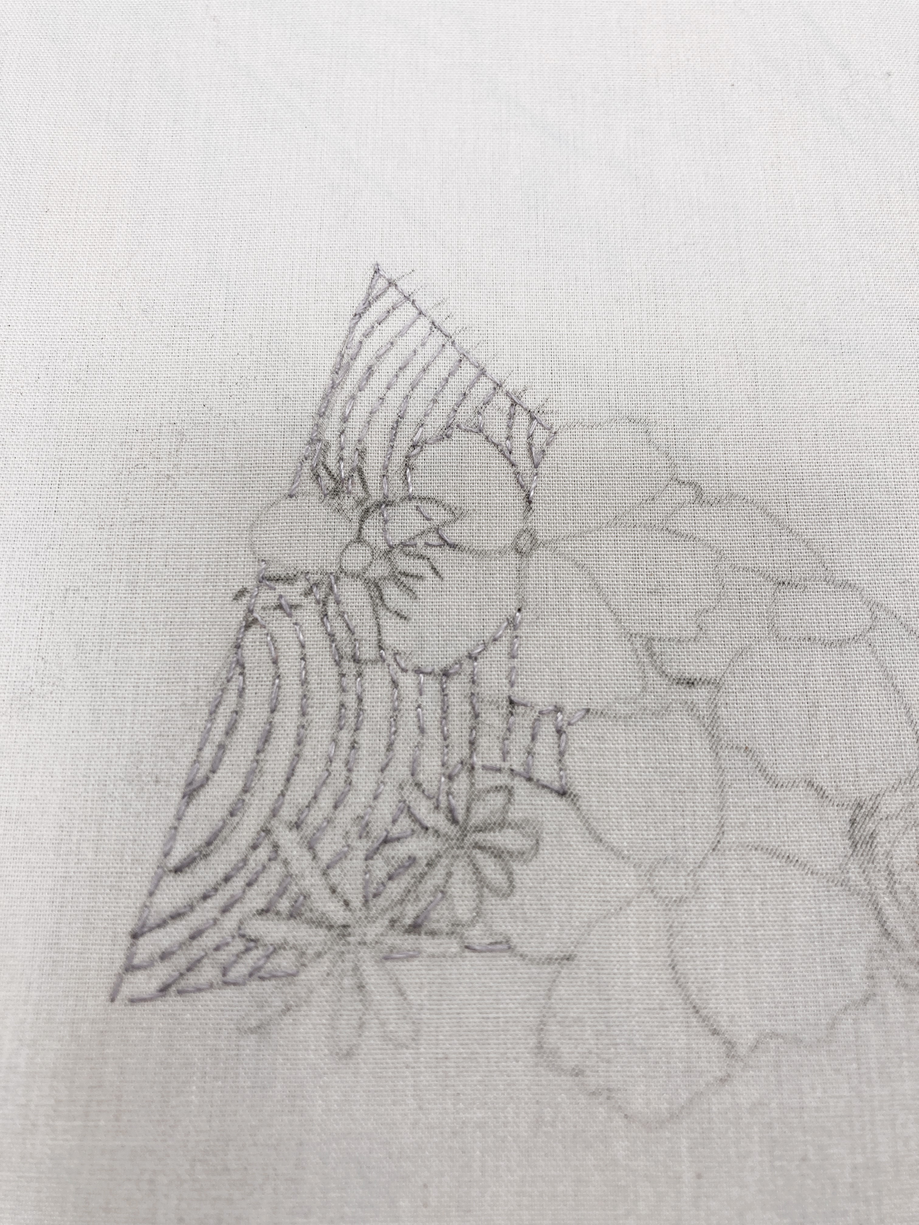 Employing the satin stitch technique, I depict colorful groomed snow, reminiscent of traditional Chinese embroidery with a flat and painterly effect. Simultaneously, the use of beads and sequins sculpts the flowers, presenting a nod to French embroidery—3D and sculptural. This harmonious blend mirrors my background, embracing my Chinese roots and overseas education and life experiences.